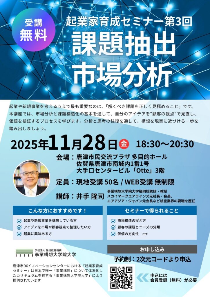 【11/28開催】起業家育成セミナー 課題抽出・市場分析