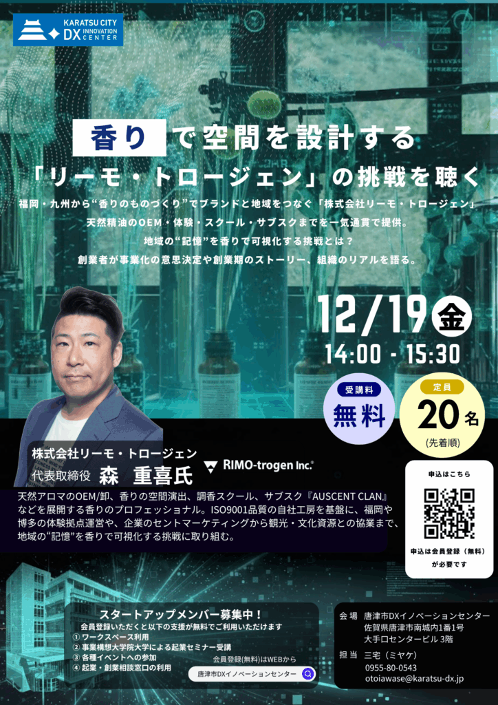 今回は、「香りで空間を設計する」をテーマに、福岡・九州から“香りのものづくり”でブランドと地域をつなぐ
