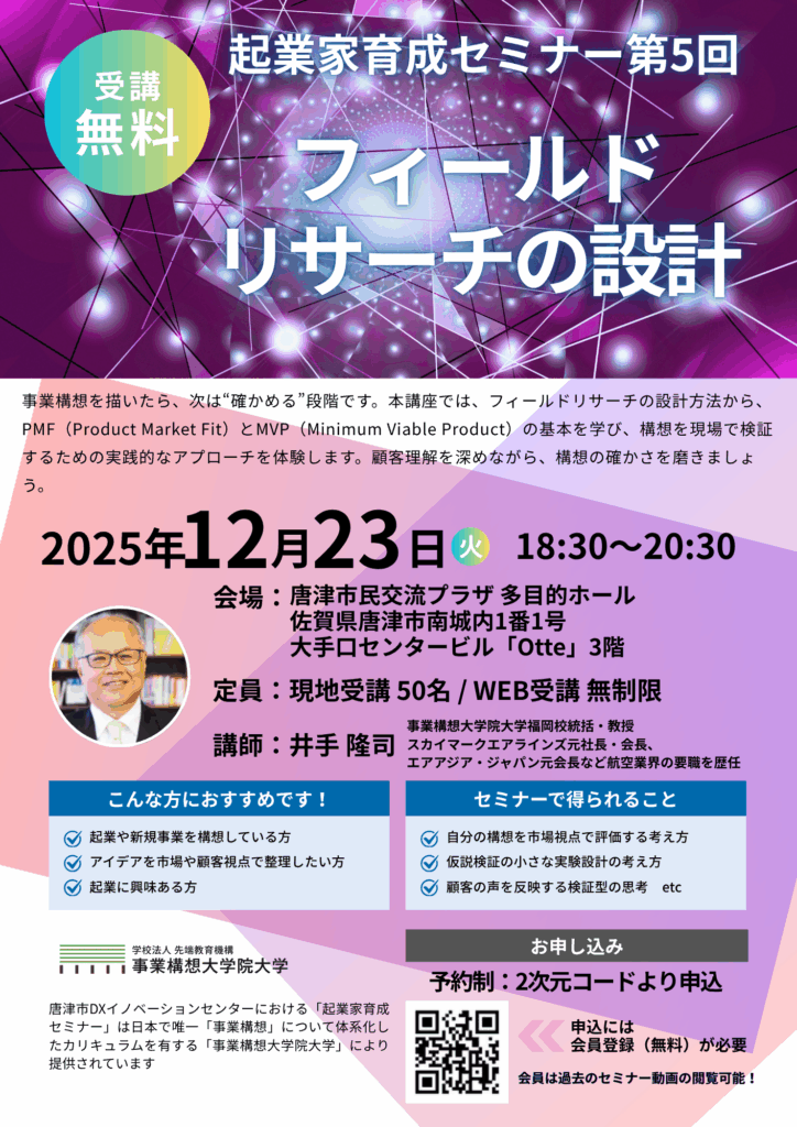 【12/23開催】起業家育成セミナー フィールドリサーチの設計・PMF~MVP