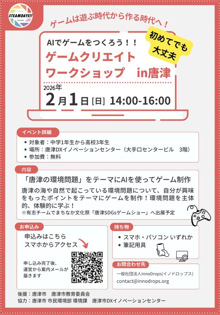 【2/1開催】InnoDrops主催イベント ゲームクリエイトワークショップin唐津